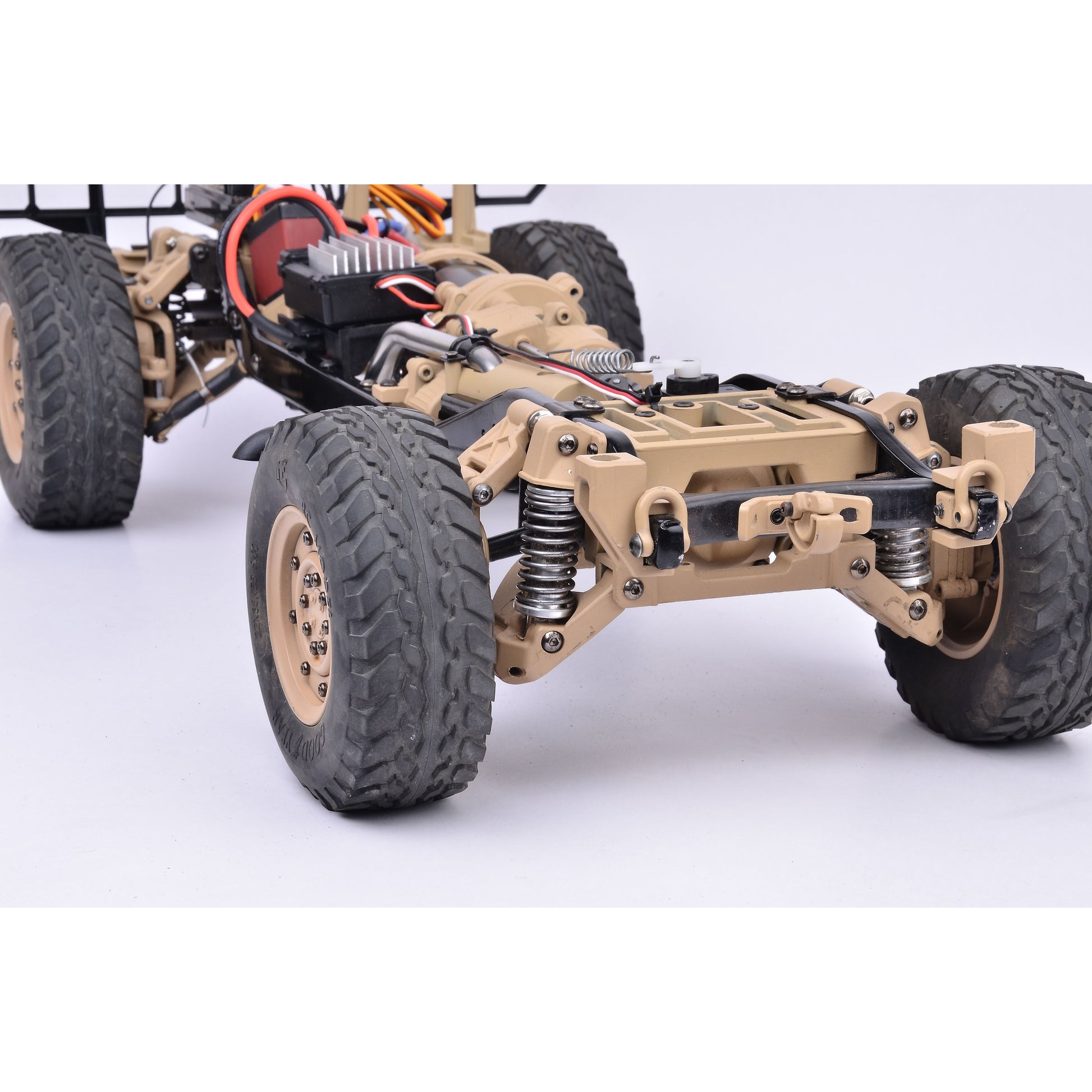 The HG P408 1/10 4X4 Military Vehicle is ready to take your off-road adventures to the next level! With its stunning replica design and superior off-road capabilities, this ARTR (Almost Ready to Run) model only requires batteries (sold separately) to get you on the battlefield. Whether you're navigating rugged terrain or displaying it proudly, this vehicle is sure to impress. Designed to run on either 2S or 6-cell packs, the P408 is packed with features that make it a must-have for any RC enthusiast!