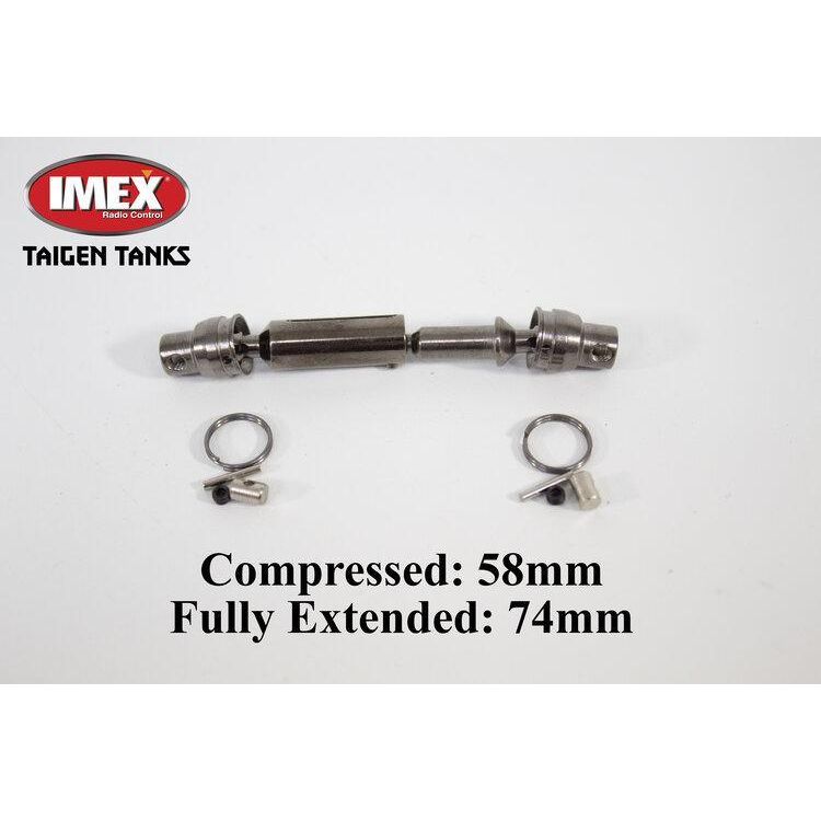 A metal transmission shaft for 1/16th scale trucks. This axle compressed is 58mm while fully extended is about 74mm. Fits multiple models, please make sure to measure yours first!