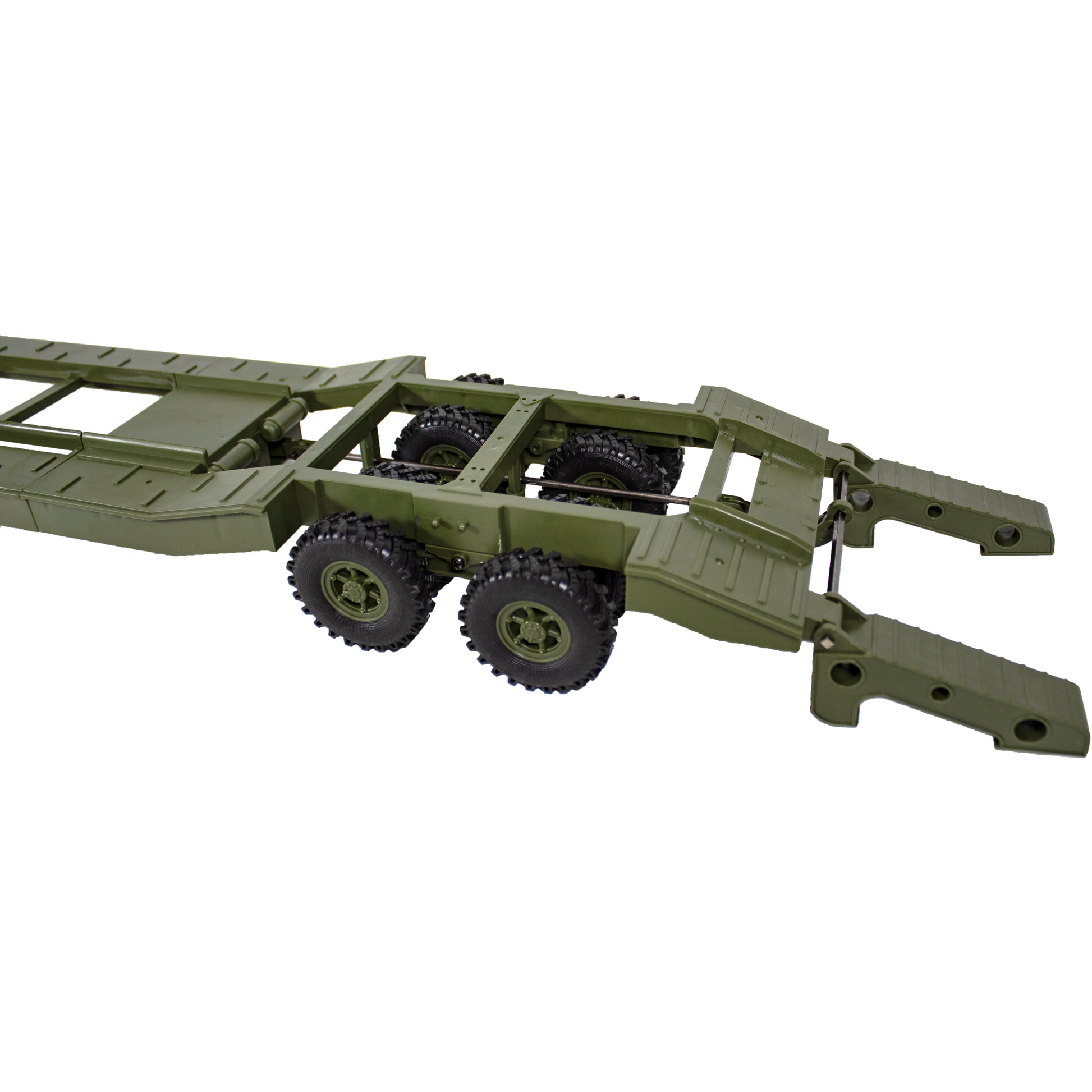 This massive 1/10 scale RTR transport truck and trailer combo is engineered for tough terrains and thrilling adventures. At over 41 inches in length, WPL's latest model is built to impress, featuring a 6-wheel drive system, a powerful brushed 260 motor, and a high-clearance gearbox that takes on rugged trails with ease. With its fully proportional throttle and steering, motorized loading ramps, and engaging details, this model is a must-have for serious RC enthusiasts.