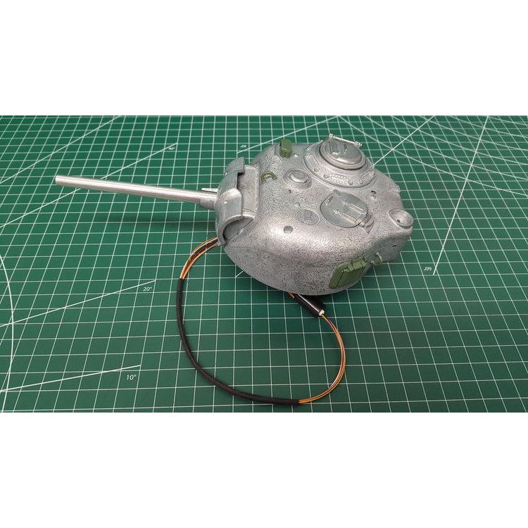 This is a completely built and ready to install Taigen Sherman M4A3 75mm metal turret. It has the firing unit, elevation, and machine gun wired and installed and is ready to go! Just plug in 4 connectors and solder your machine gun connection and you done.