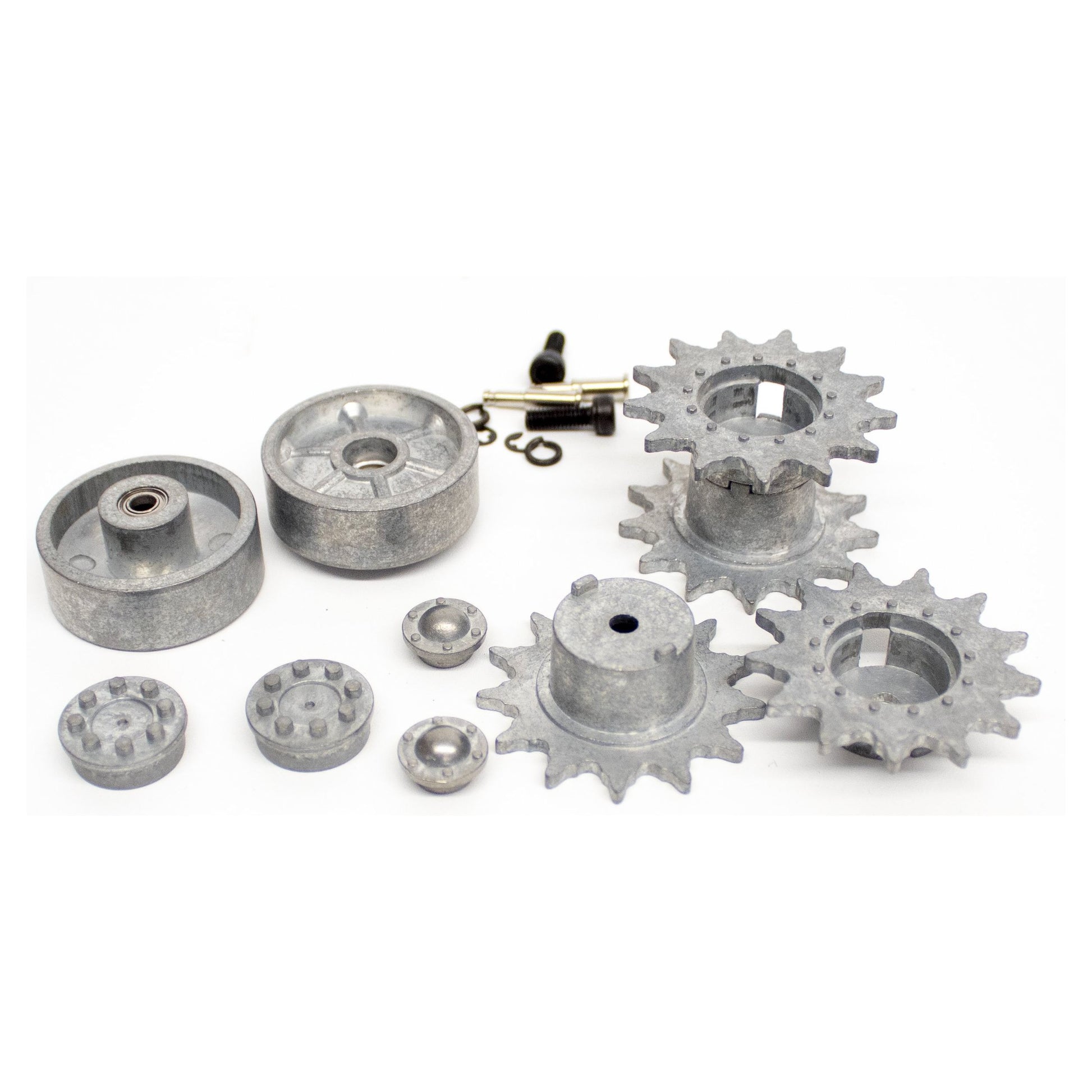 Metal drive and metal idler wheel set. Our idlers include bearings for super smooth operation.